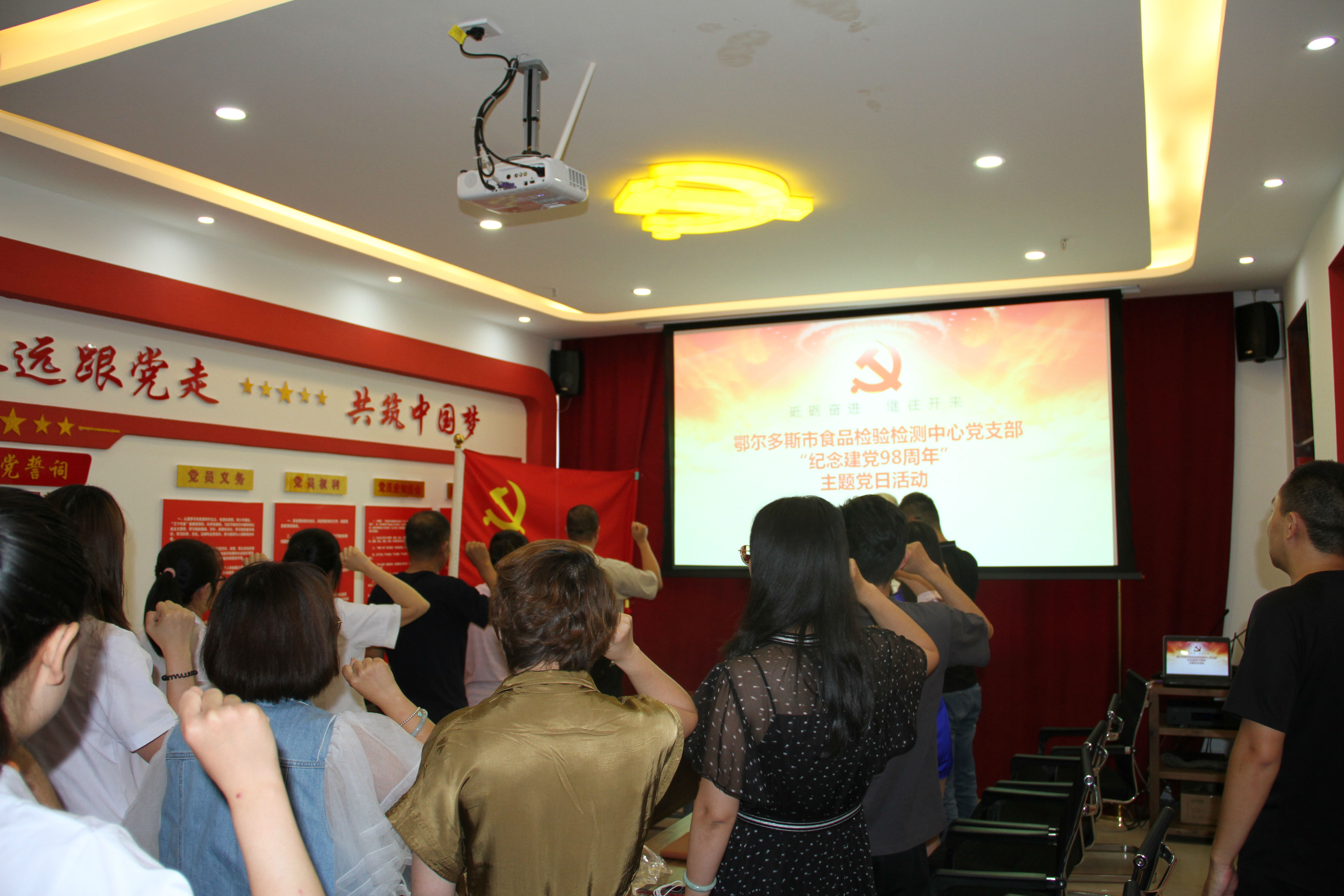 7月1日,市食品检验检测中心党支部组织开展了“不忘初心、牢记使命”主题教育活动。首先由支部全体党员面对党旗重温入党誓词,通过铿锵有力的宣誓,增加了全体党员干部的使命感和责任感,也以这种方式庆祝中国共产党的98岁生日。随后学习传达了市场监督管理局党组丁挨玺书记和市纪委监委派驻纪检组尚凤岐书记《在鄂尔多斯市市场监督管理局纪念建党98周年暨党建和党风廉政建设工作会议上的讲话》精神,动员支部党员以习近平新时代中国特色社会主义思想为指导,全面落实市局的各项决策部署,以更坚决的态度,更务实的作风,全力提升检验检测水平和党建工作质量,全力保障人民舌尖上的安全。