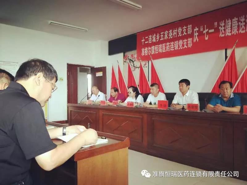 党旗光鲜耀眼,党徽熠熠生辉!2018年是全国全面贯彻落实党的十九大精神的开局之年,我们共产党人时刻铭记“不忘初心,牢记使命”的大会主题,这将是我们今后一段时间内开展工作的思想引领。在中国共产党建党97周年来临之际,准旗恒瑞医药连锁有限责任公司党支部积极响应上级领导的号召,开展迎“七一”送健康送温暖活动