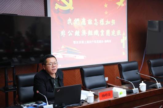 11月26日上午,鄂尔多斯市委党校副校长苏永清教授对党的十九大报告做了系统全面,深入细致的解读;下午全体参加培训人员实地观摩了鄂尔多斯市东晟建设工程公司党支部“景区党建”、伊旗丽景商业广场党支部“商圈党建”及鄂尔多斯市正康农牧业开发集团公司党支部“楼宇党建”等特色党建品牌示范点。 11月27日上午,鄂尔多斯市工商局小微企业科科长、个私党建办主任杨峰岗就鄂尔多斯市非公领域党建带团建工作模式及如何做好非公党团建工作进行了经验交流。下午费毅书记做了关于“不忘初心,牢记使命——中国共产党成立回顾”专题讲座以及从信息报送和公文写作的意义、存在问题、报送形式和渠道进行了现场教学。