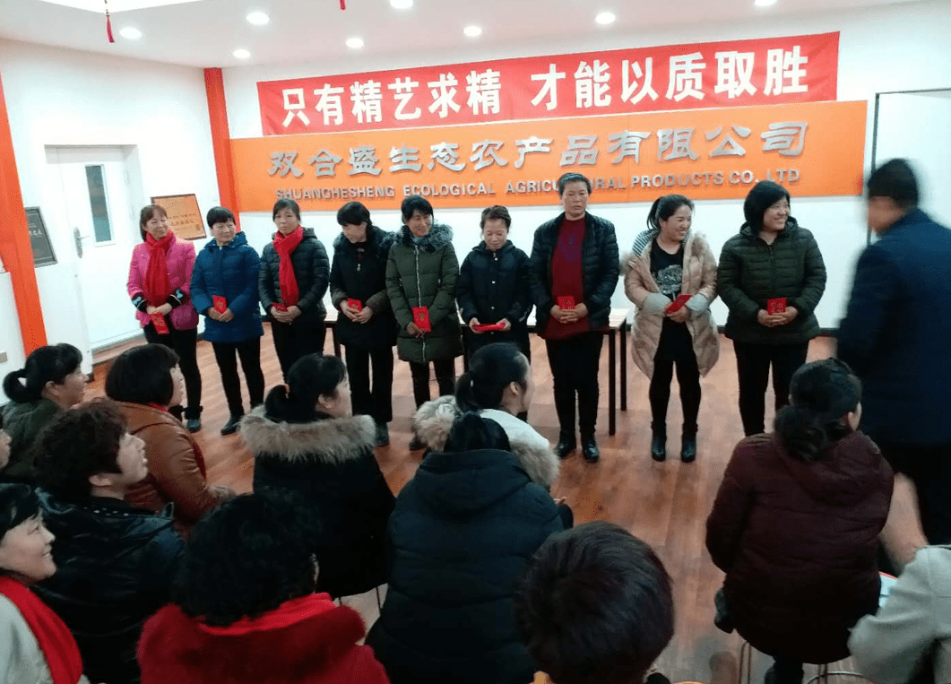 双合盛生态农产品有限公司为了提高企业竞争力,在全体员工中广泛提倡“爱岗敬业”“工作质量无小事”等工作服务理念。在公司里,党员带头扎实工作、勇于创新、服务为先、甘于奉献的工作态度已经成为公司广大年轻职工的共同追求,涌现出一批先进典型。公司党支部书记张胜利同志常常整夜待命,经常半夜奋战在一线,尽管工作强度高,但毫无怨言,以身作则的工作态度让公司职工深深折服。公司党员职工十年如一日,不论是基层岗位还是管理岗位,始终把工作质量当做生命,任劳任怨,充分发挥了党员在广大职工中的模范带头作用。
