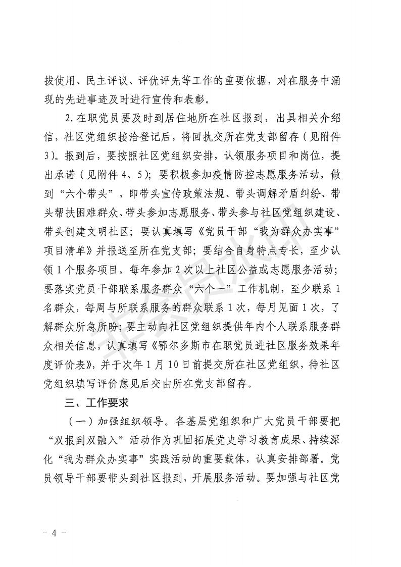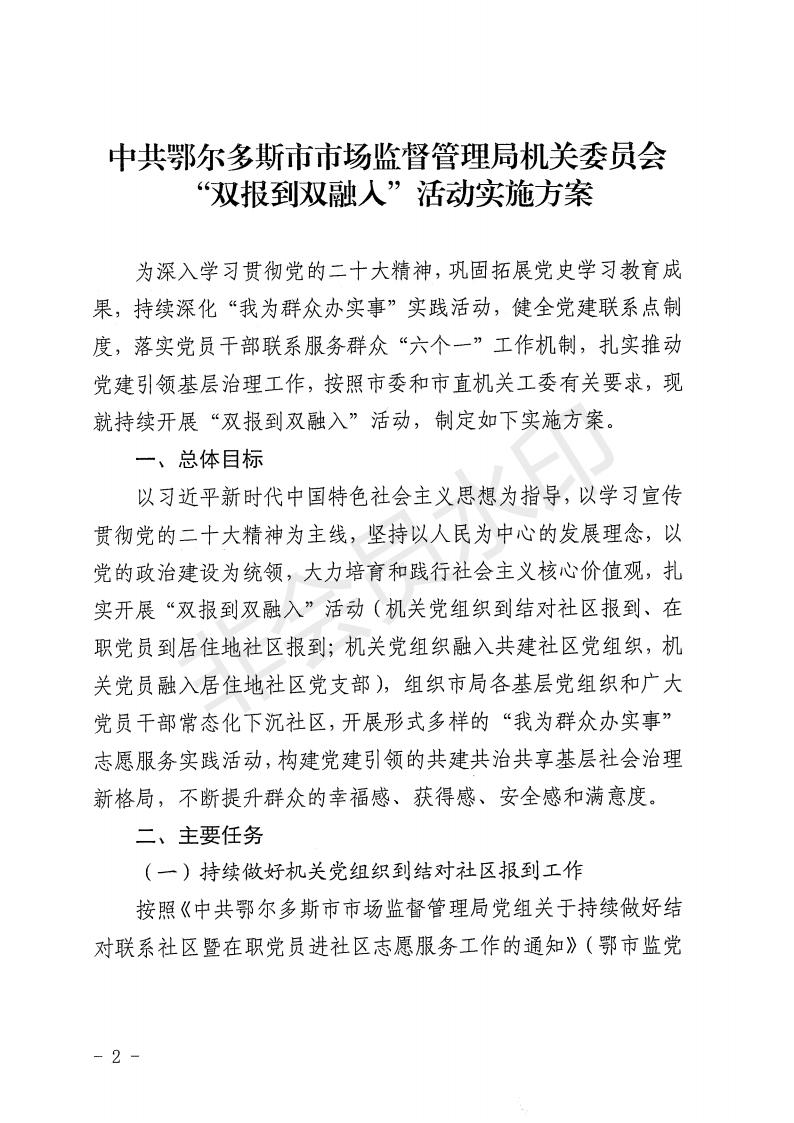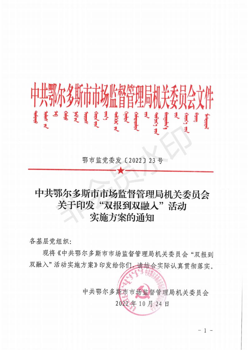 中共鄂尔多斯市市场监督管理局机关委员会关于印发“双报到双融入”活动实施方案的通知