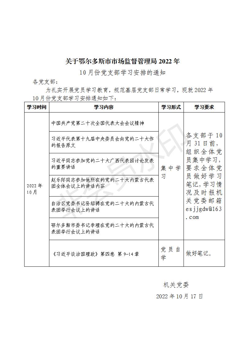 鄂尔多斯市市场监督管理局2020年10月党支部...