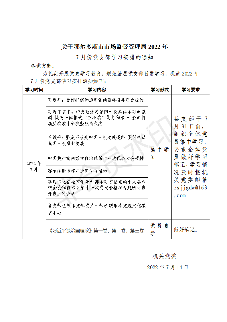 鄂尔多斯市市场监督管理局2020年7月党支部...