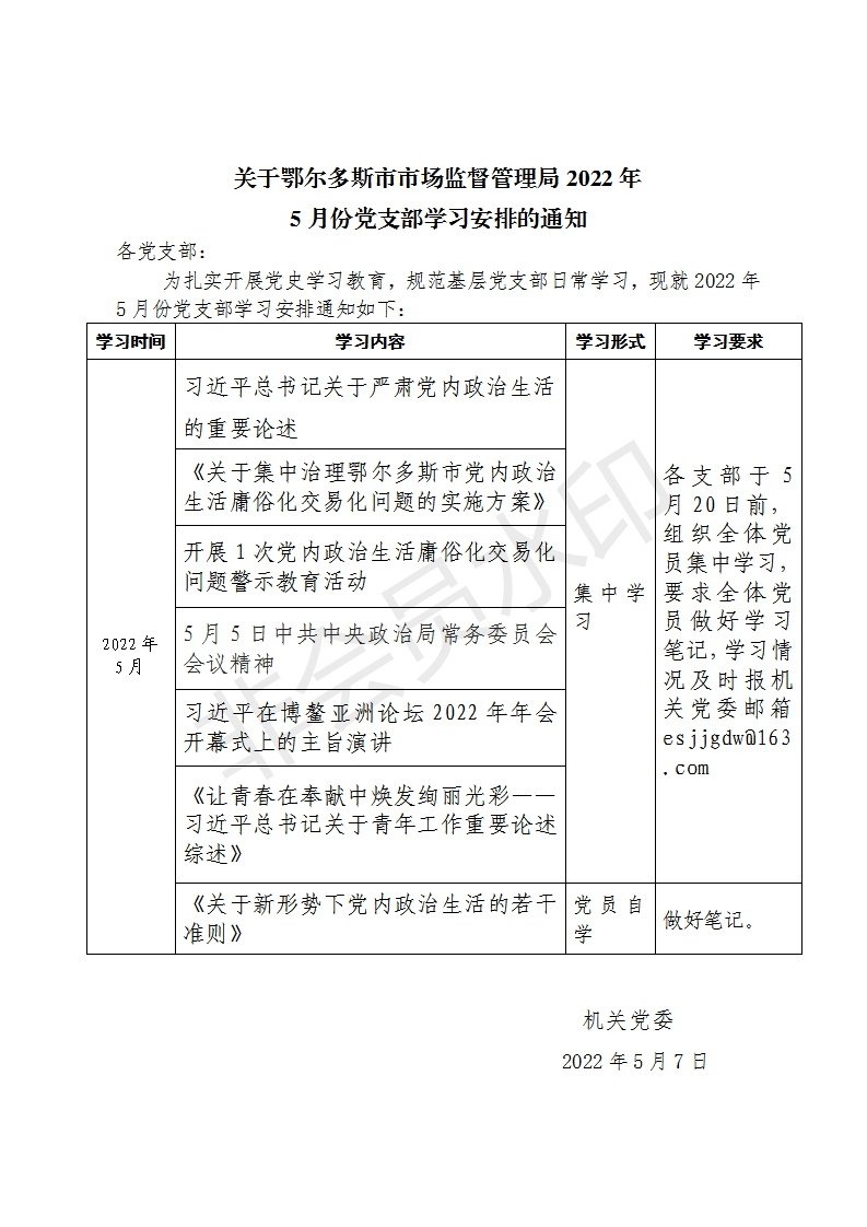 鄂尔多斯市市场监督管理局2020年5月党支部...