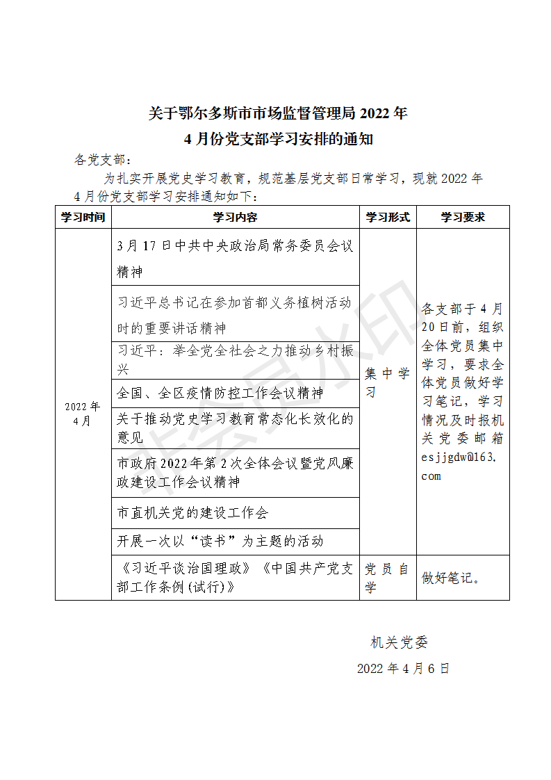 鄂尔多斯市市场监督管理局2020年4月党支部...