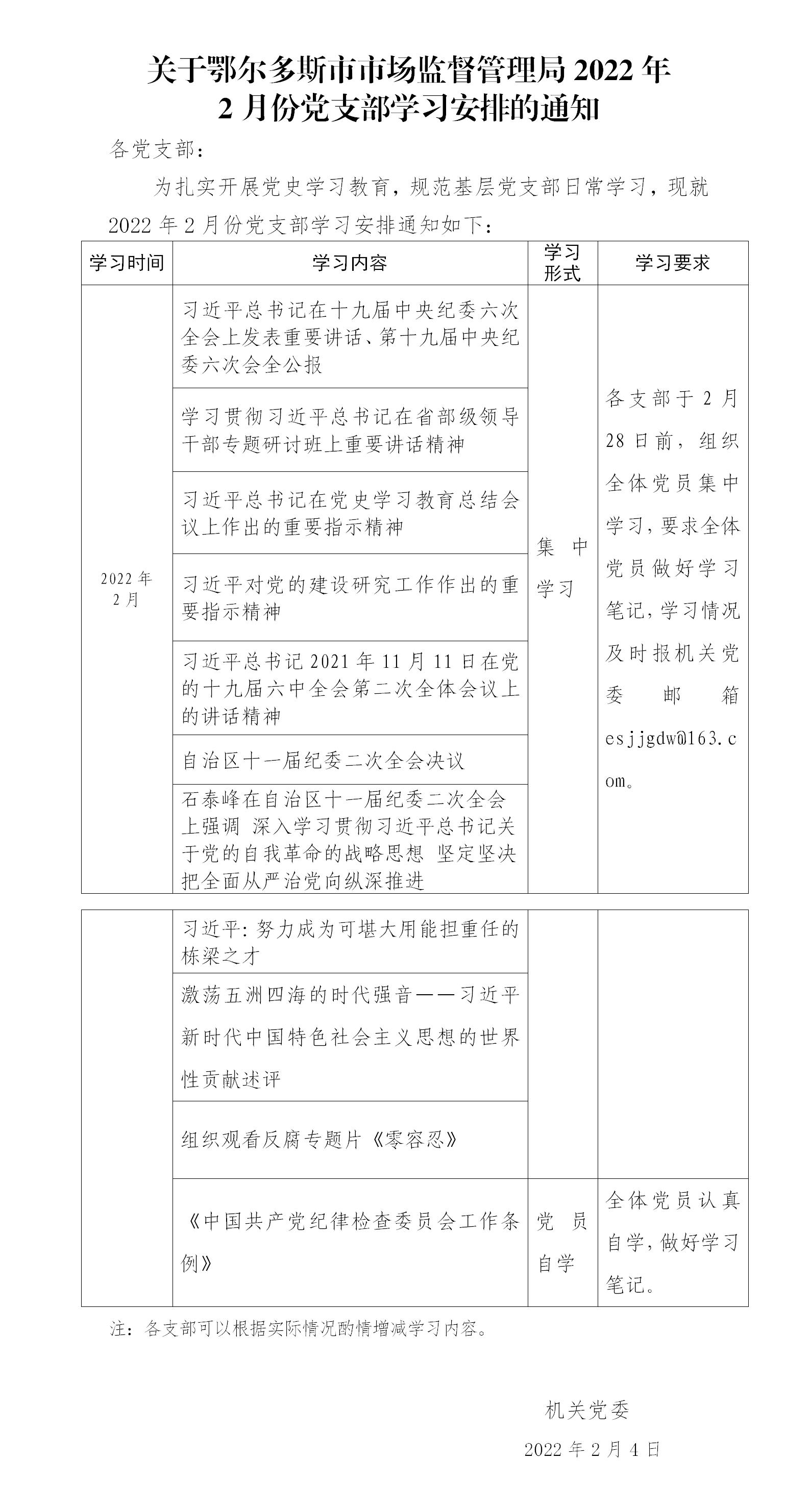 2022年2月党支部学习安排的通知