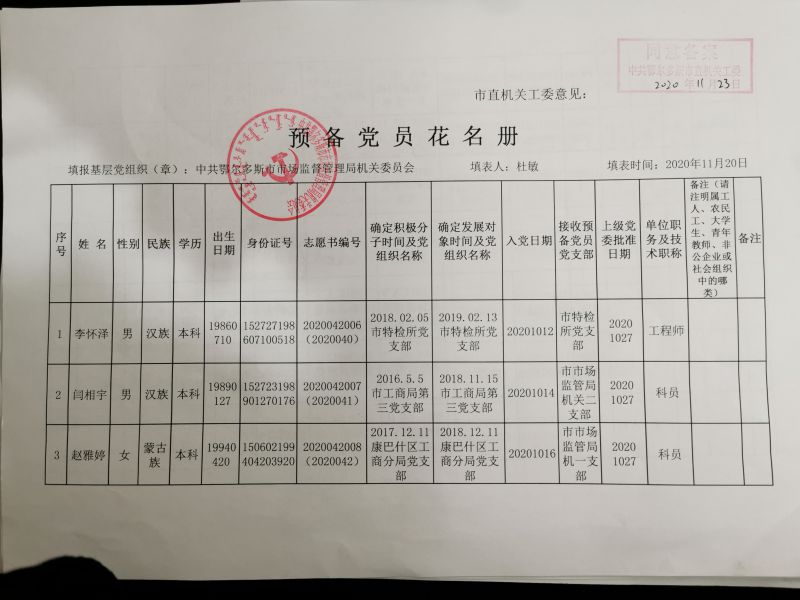 鄂尔多斯市工商局关于2018年度党员发展计划...