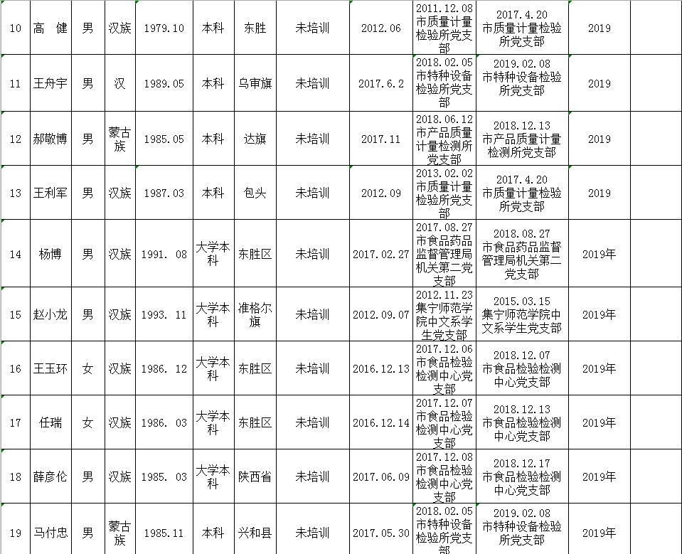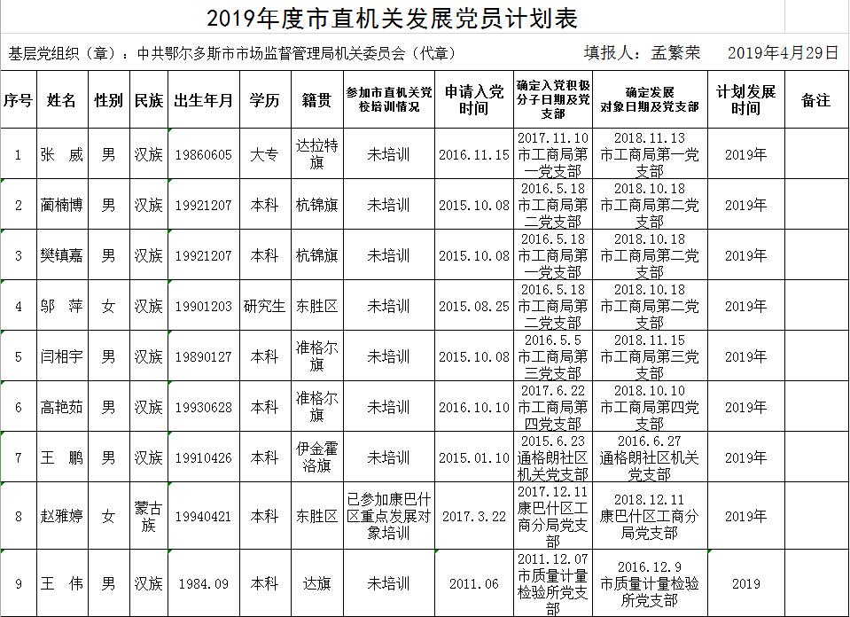 鄂尔多斯市市场监管局关于2019年度党员发展计划的公示