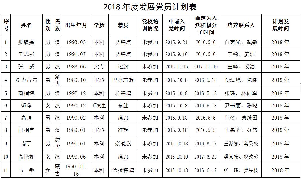 鄂尔多斯市工商局关于2018年度党员发展计划...